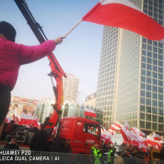 Nasi działacze Klaudia, Lucynka, Franek, Paweł uczestniczyli w Marszu Niepodległości w Warszawie Marsz ruszył z ronda Dmowskiego po godzinie 13:00. Przeszedł on Alejami Jerozolimskimi w kierunku Stadionu Narodowego Według naszych działaczy w marszu mogło uczestniczyć nawet do 150tyś osób. Brak naszej relacji live z powodu problemu z internetem (jak przypuszczamy ze względów bezpieczeństwa), jak i zgłaszania relacji na fejsbuku przez nieprzychylne osoby wyrażaniu patriotyzmu Polskiego, takie jak prezydent Warszawy, który nie uczestniczy w marszach patriotycznych.